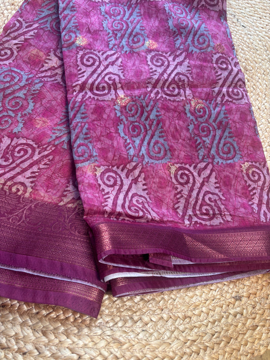 Lily Magenta Cotton Silk Saree with Artistic Printed Design