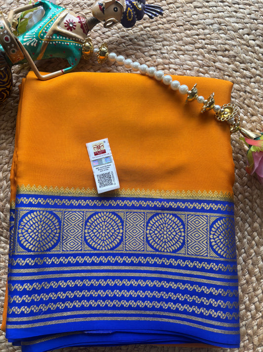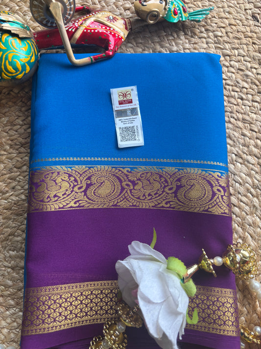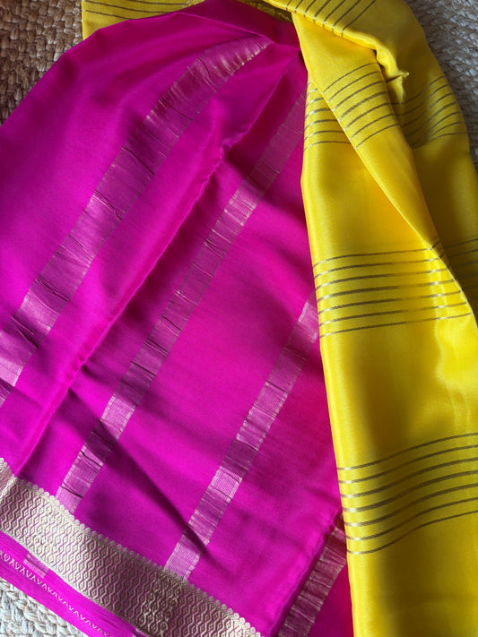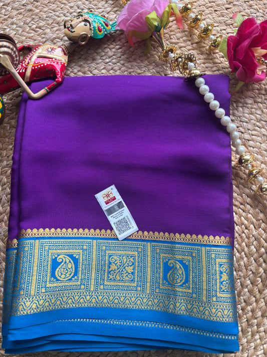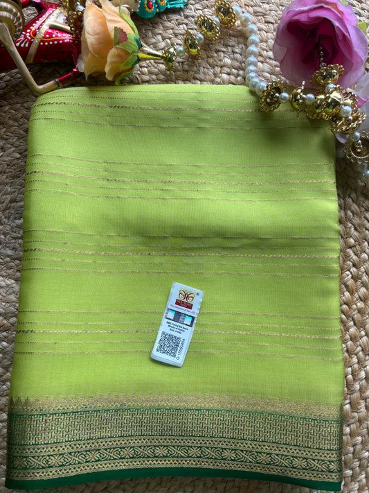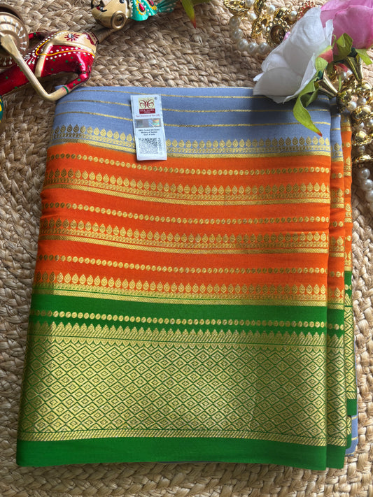 Pure Mysore Silk Single Border Maroon and Green Saree