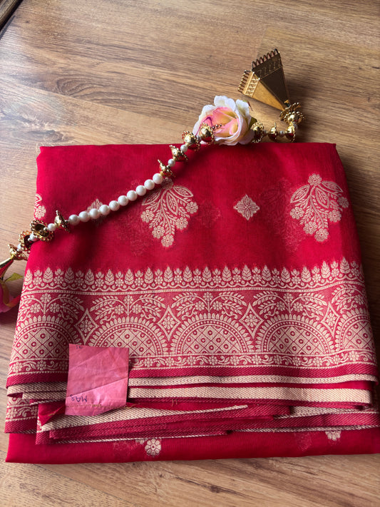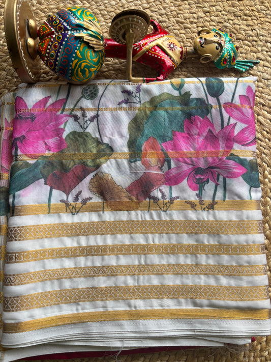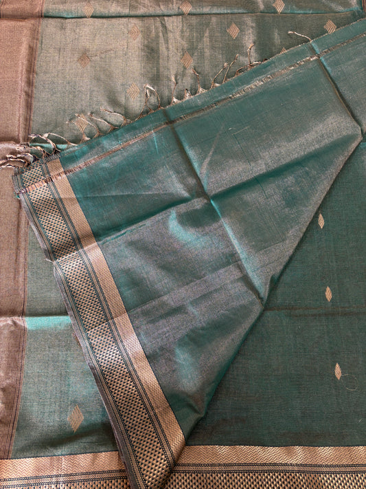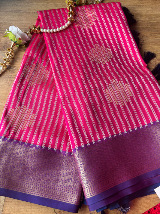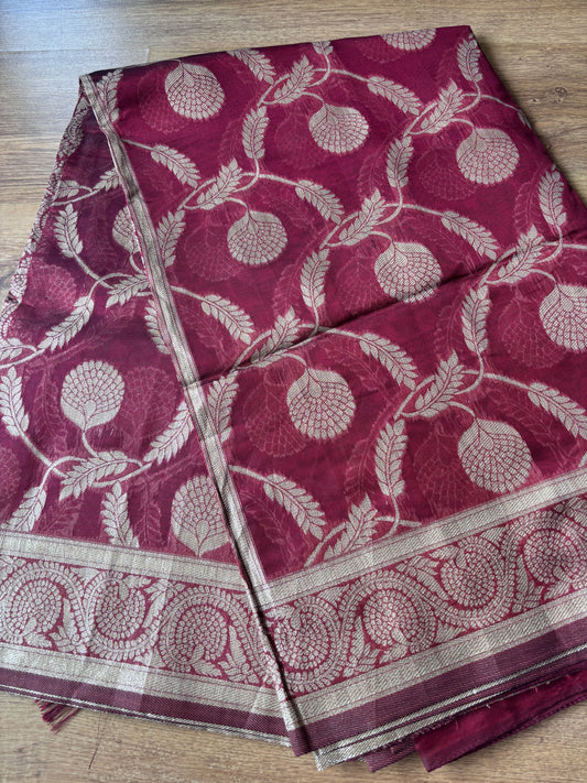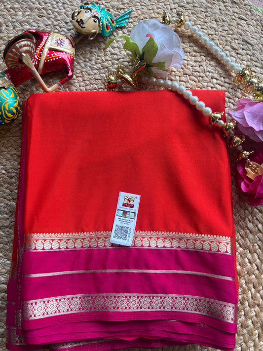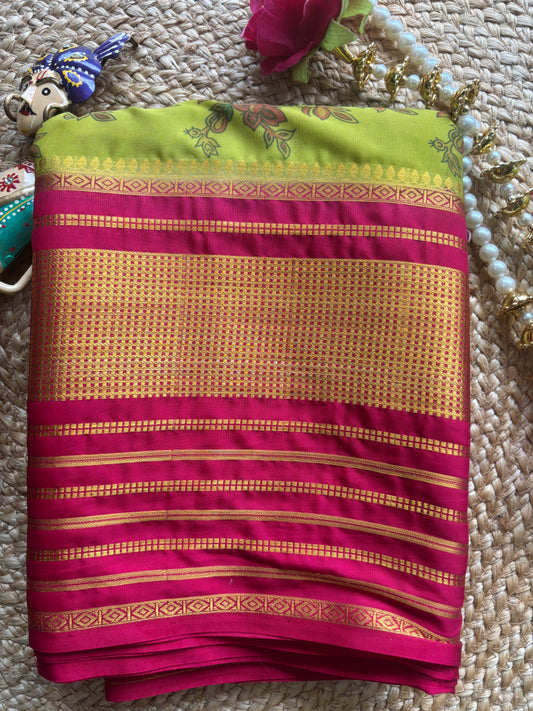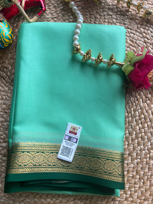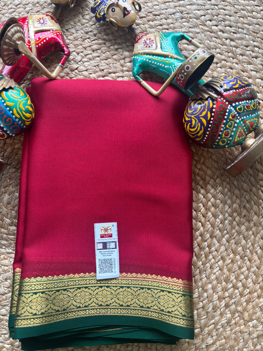 Pure Mysore Silk Single Border Maroon and Green Saree
