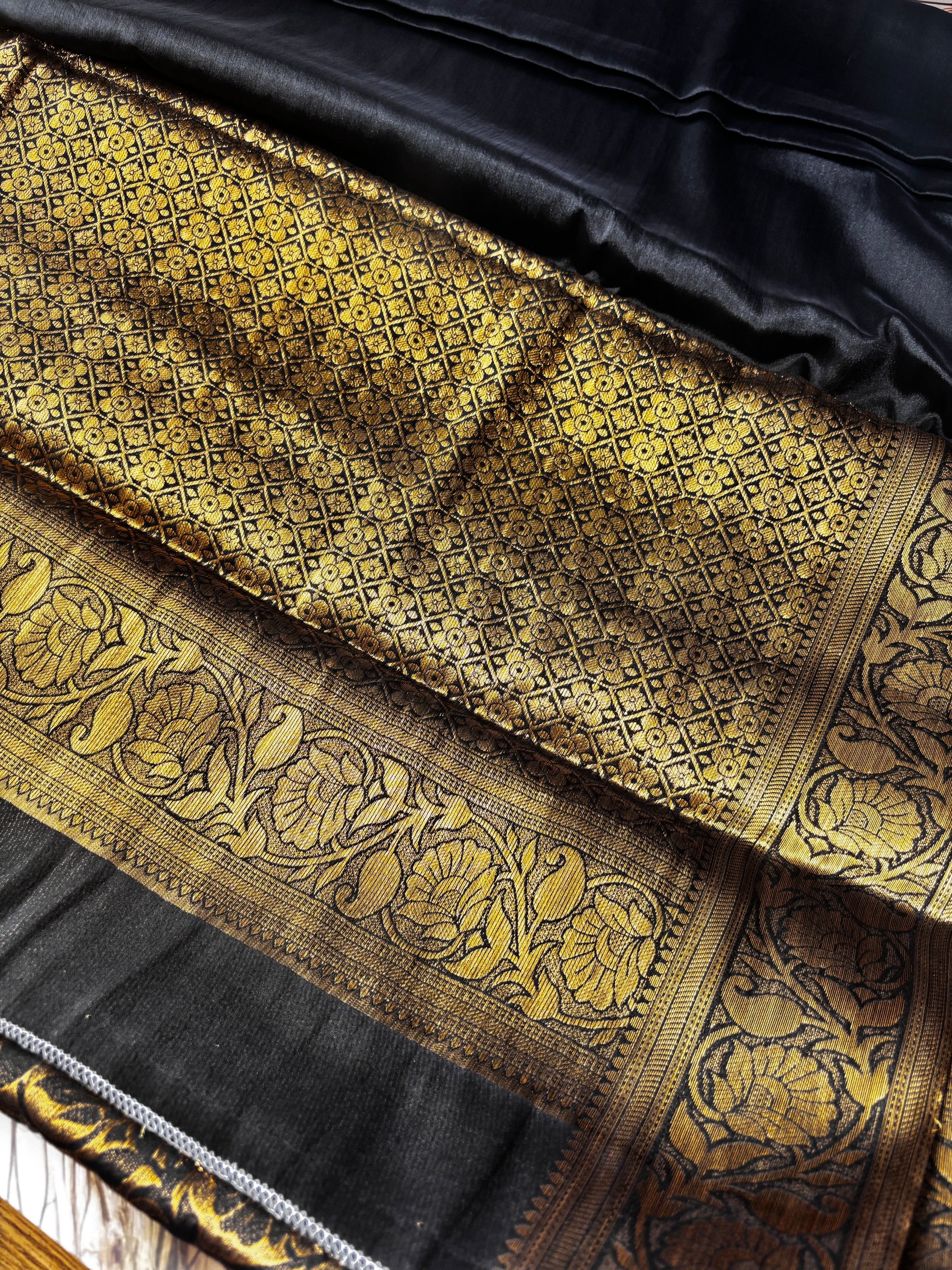 ✨ Work: Golden Floral Zari Banarasi Weave
