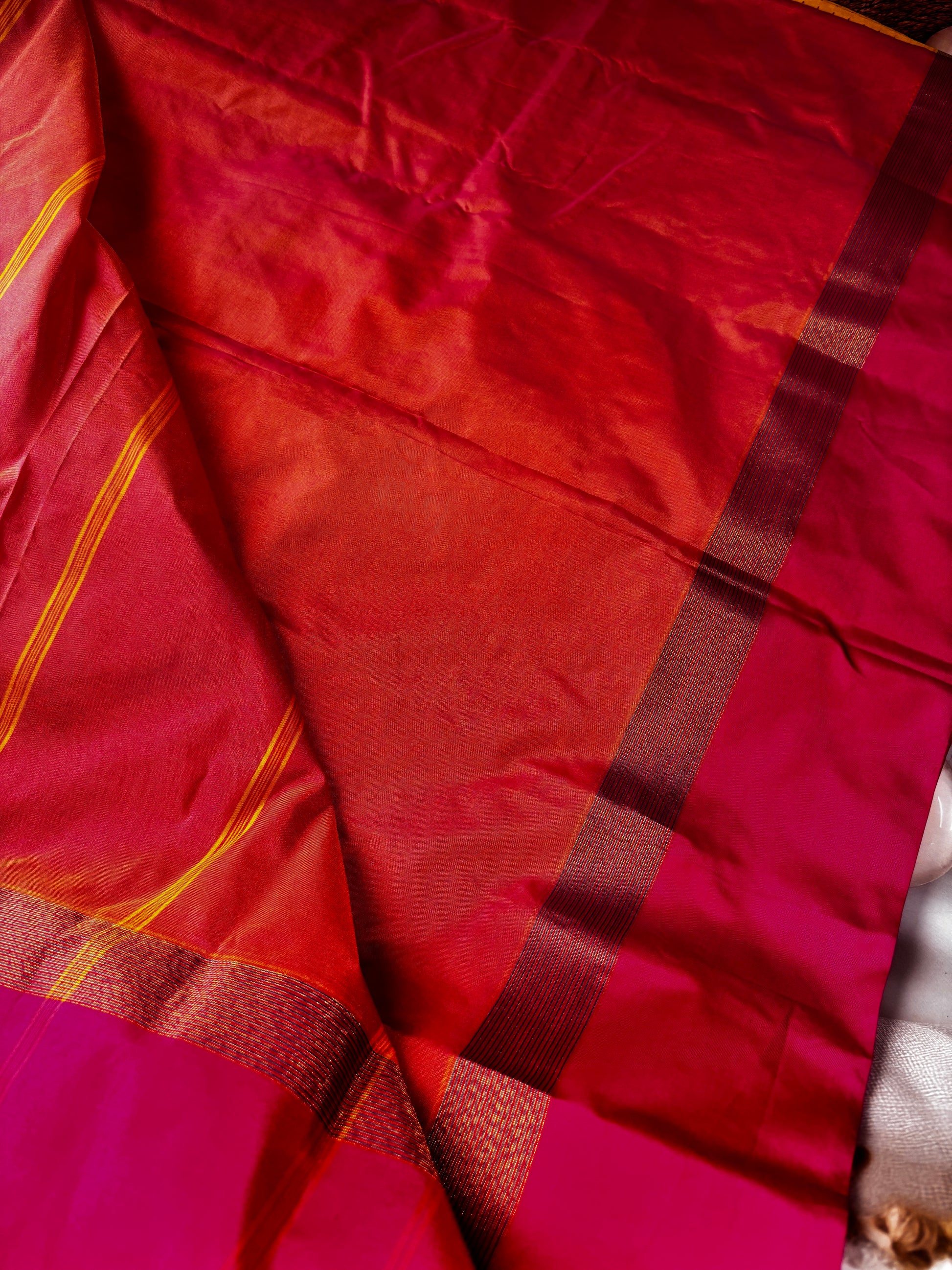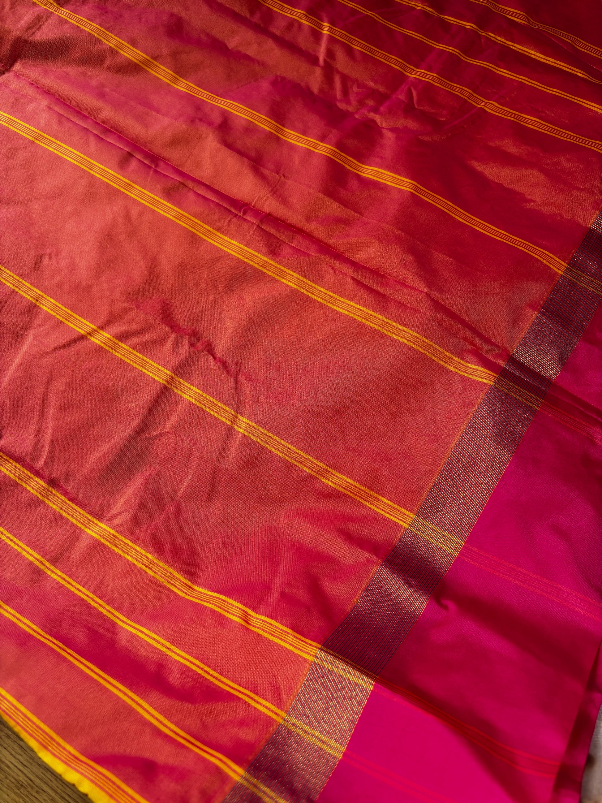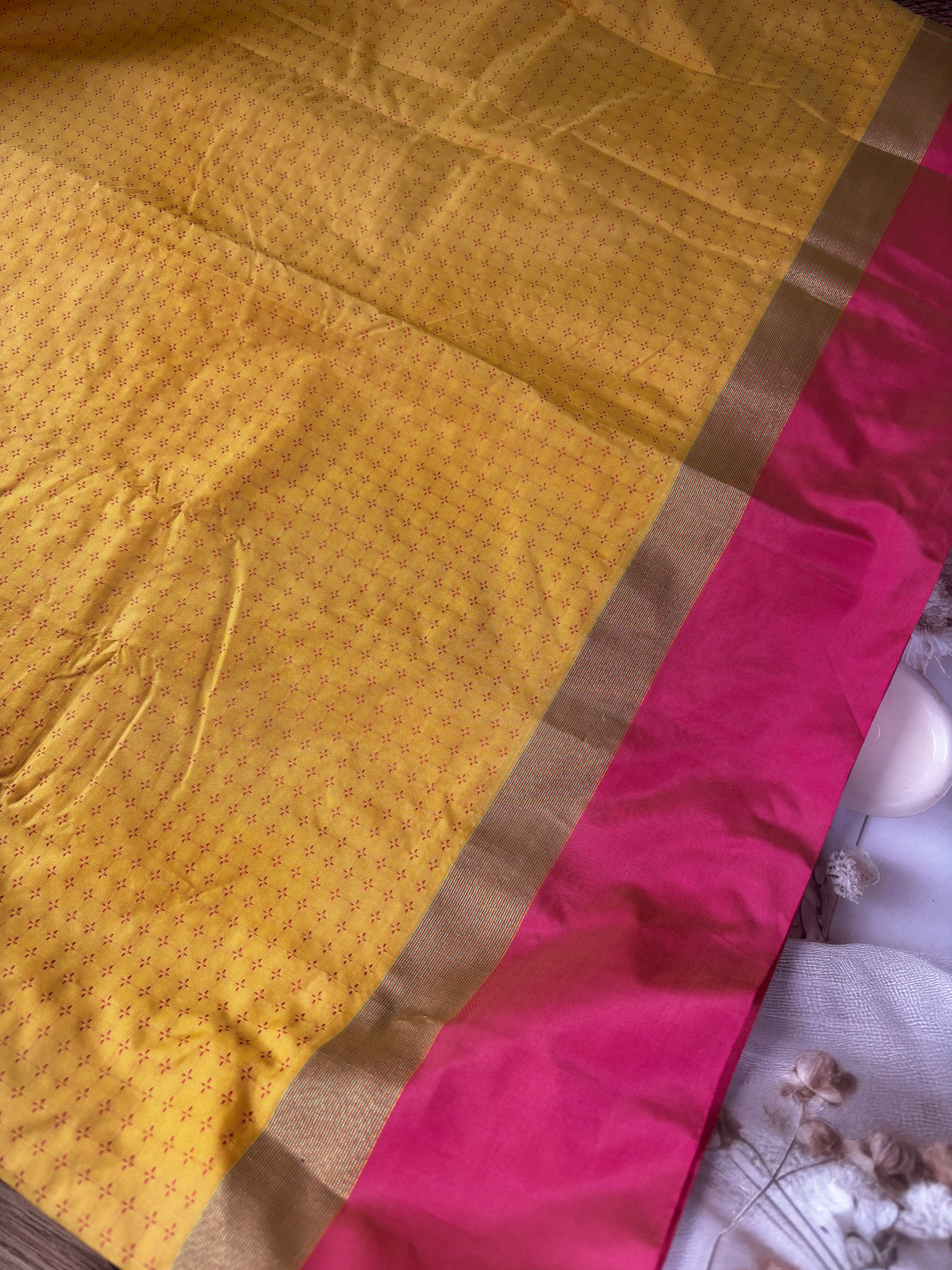 Vrindaa – Mustard Yellow & Maroon Soft Silk Saree